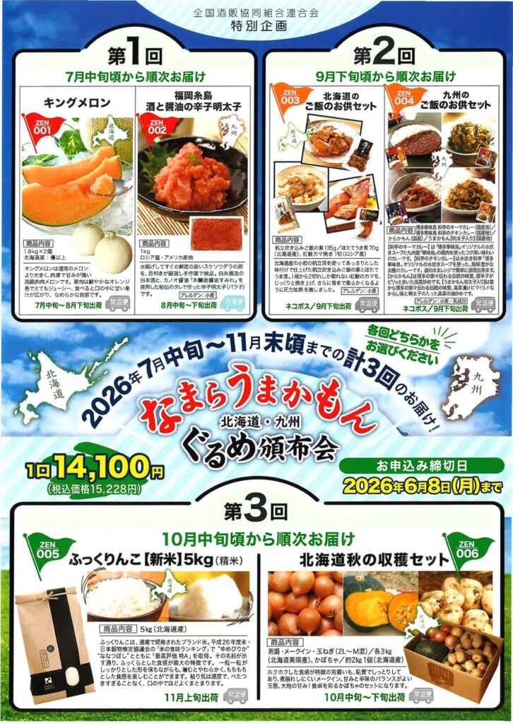 全酒協・特別企画「なまらうまかもん北海道・九州ぐるめ頒布会」のご案内