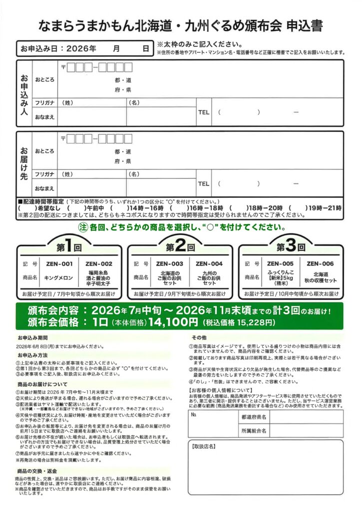 2026年前期頒布会「なまらうまかもん北海道・九州ぐるめ頒布会」を令和8年7月中